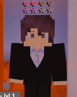 Once they arrive, he's still nervous, and leaves some time during Aphmau's conversation with Theo and Cyrus at the door. He escapes to the halls, nursing a panic attack against a locker. When Aph finds him, he tries to insist that he's fine and that she can just go back to her friends, but she persists. She figures out that he's anxious, no matter how hard he tries to hide it or pretend it's minor, and he reveals that his anxiety is why he ditches class. He says he almost ditched tonight, too, but he wanted to give Aphmau a great night since it meant so much to her. He feels as if he fails, but Aphmau stops him and suggests they just stay out here- after all, they can still hear the music from the gym.